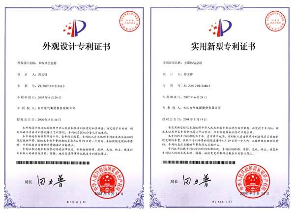 5月20日,长江集团新获两项国家专利(专利号:ZL200730121541和ZL200720112488.2)。