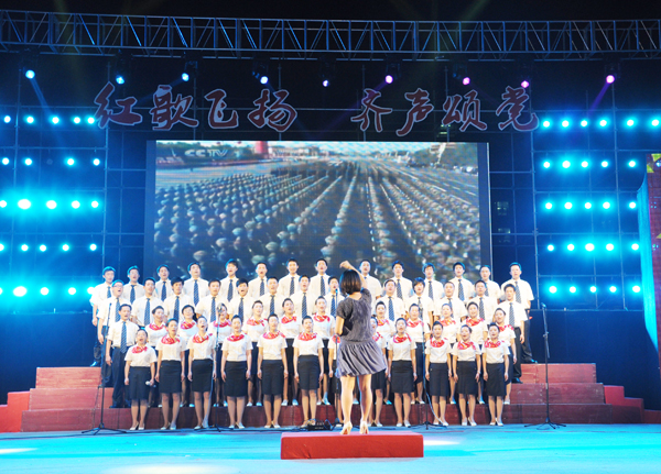 本报讯 7月22日晚,由中共柳市镇委员会、柳市镇人民政府主办的“红歌飞扬 齐声颂党――柳市镇纪念中国共产党成立90周年大合唱比赛”在镇政府广场隆重拉开帷幕,超凡国际官网-追求健康,你我一起成长-pgcf等17支来自镇机关、企业、学校及行政村的代表队伍参加了此次比赛,为当晚的观众带来了一场场精彩的表演。