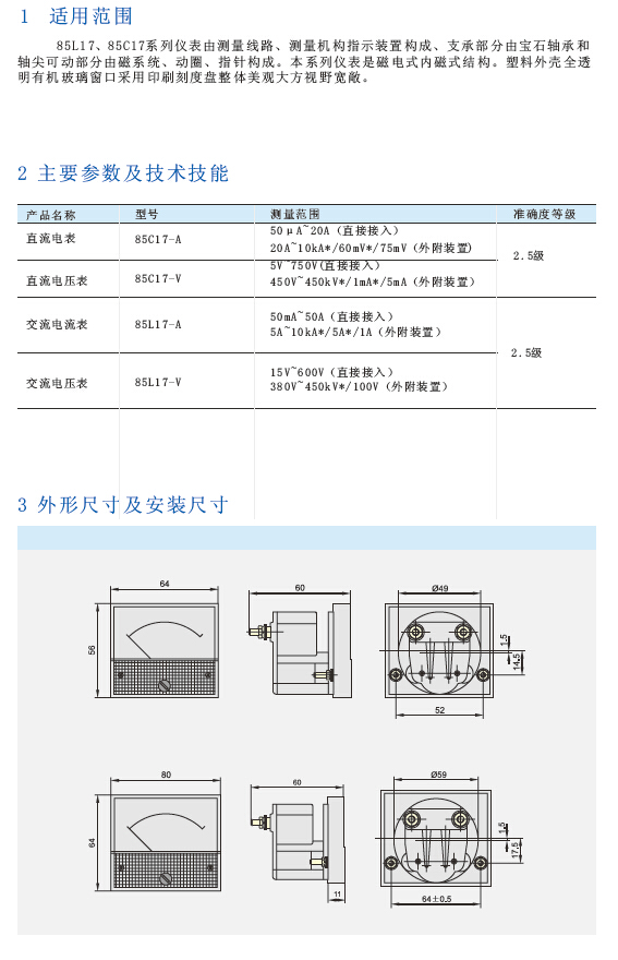 85L17、85C17系列电流、电压表