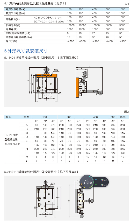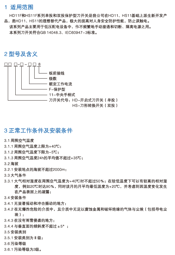HD11F、HS11系列保护型开启式刀开关