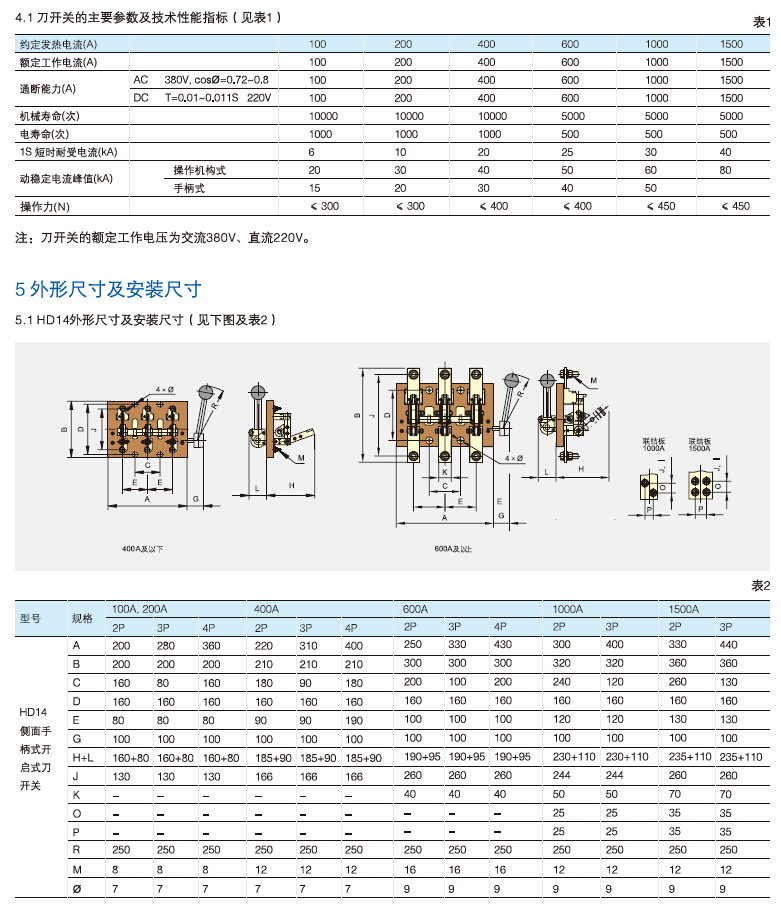 HD14、HS14系列开启式刀开关及刀型转换开关