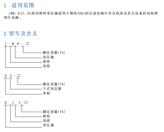 JMB、BJZ、DG系列照明变压器